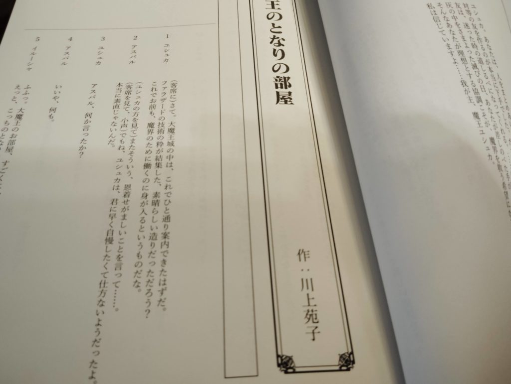 「台本集」というぐらいですから、舞台などで役者さんが使う台本をそのまま書籍化したような感じです。